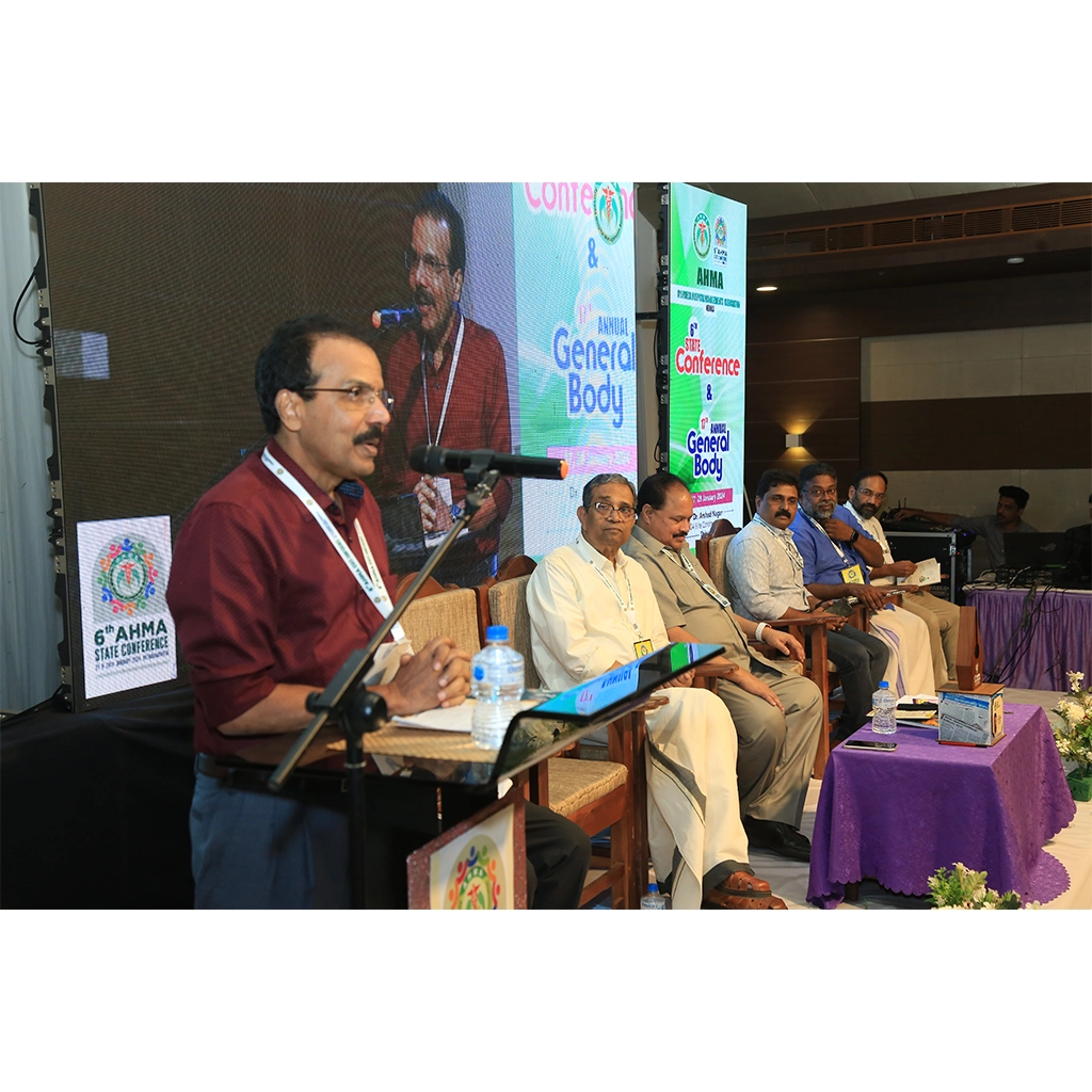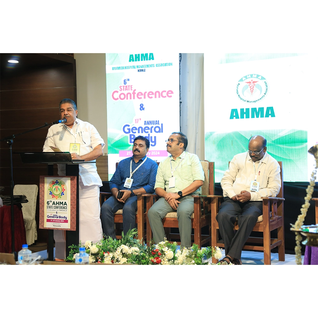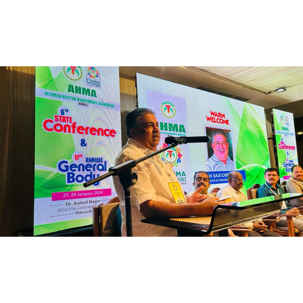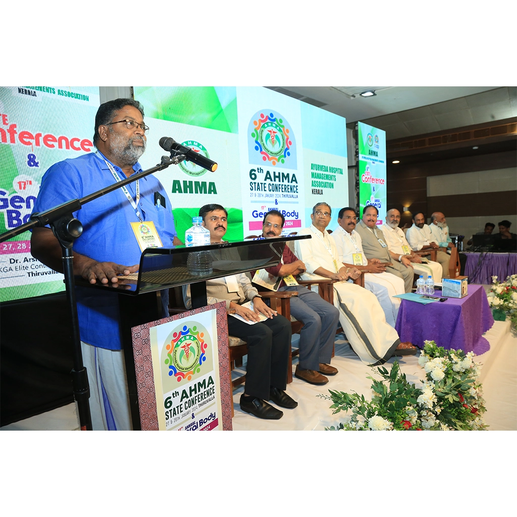 The 6th AHMA State Conference and 17th Annual General Body Meeting was held on 27 & 28 January 2024 at KGA Elite Continental Hotel, Thiruvalla. The two-day event brought together leading Ayurvedic hospital representatives, healthcare professionals, policymakers, and AYUSH dignitaries from across the state and nation.